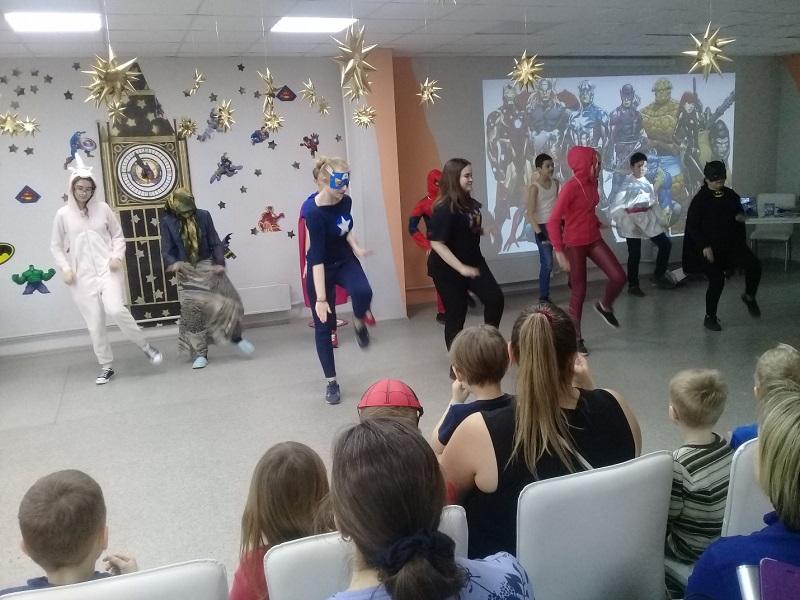 После все внимание гостей библиотеки приковали ученики школы № 1245, которые исполнили литературно-музыкальную композицию «Супергерой». А параллельно работала литературная станция «От сохи до атомных орудий», и шла интерактивная викторина по математике «Храбрецы и супергерои».