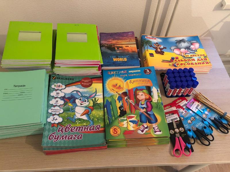 - Книги, канцелярия (карандаши, фломастеры, кисточки, ручки, тетради, клей, пластилин и т.д.);