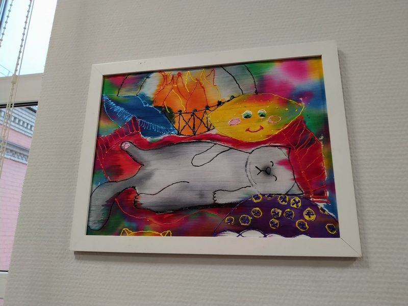 – Работая над осенними пейзажами, мы с детьми изучали воздушную перспективу, учились передать свет и тень. Погружаясь в образы природы, ребята формируют в себе любовь к родному краю, – отметила педагог Центра Гульшат Латыпова. Особое внимание она обратила на необычные работы в технике батик: на одной из них кот безмятежно спит на диване, а рядом с ним лежит, улыбаясь, желтая подушка. Краски яркие, радужные, поднимающие настроение каждому. Еще Гульшат Латыпову впечатляет произведение «Кленовые листья»: оно тоже выполнено в технике батик.