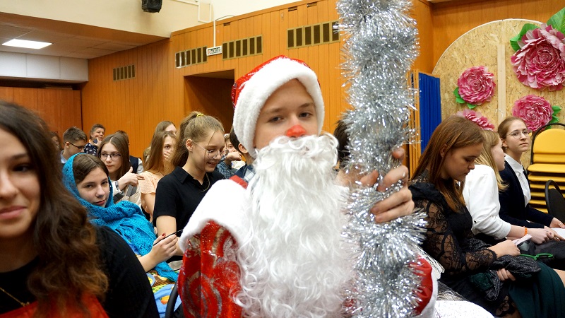 Для каждой возрастной категории подготовили специальную программу. Так, малыши с первого по третий класс получили в подарок сказочные спектакли, организованные одиннадцатиклассниками. Дети не только смотрели представления, но и отгадывали загадки, пели песни, водили хороводы с Дедушкой Морозом и Снегурочкой.
